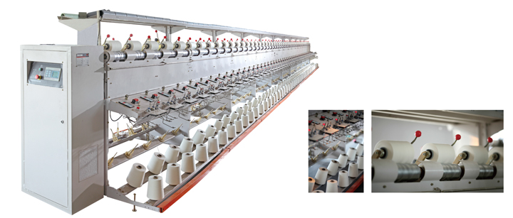 Products features: 1.Suitable range: Merge two or three strands of cotton, can apina fibre, fur, chemical fibre or their blends into one yarn, prepare bobbins for following equipment of two-for-one twister. 2. Features ¡ú Single spindle control by single motor, speed control by frequency conversion, easier for winding speed and technique parameter adjustment? ¡ú Use inspection device for yarn broken to avoid any strands absent ¡ú Applying alarm reset button, easy for finding yarn-broken spindle ¡ú Adopt sections assembling mode, it can shorten erection time at site ¡ú Control panel: operation ease, simple for winding speed setting and yarn length detecting ¡ú Penumatic lifting device: Package immediately after yarn broken, and easy for piecing ¡ú Tension device: easy to adjust yarn tension by changing tension slices . |